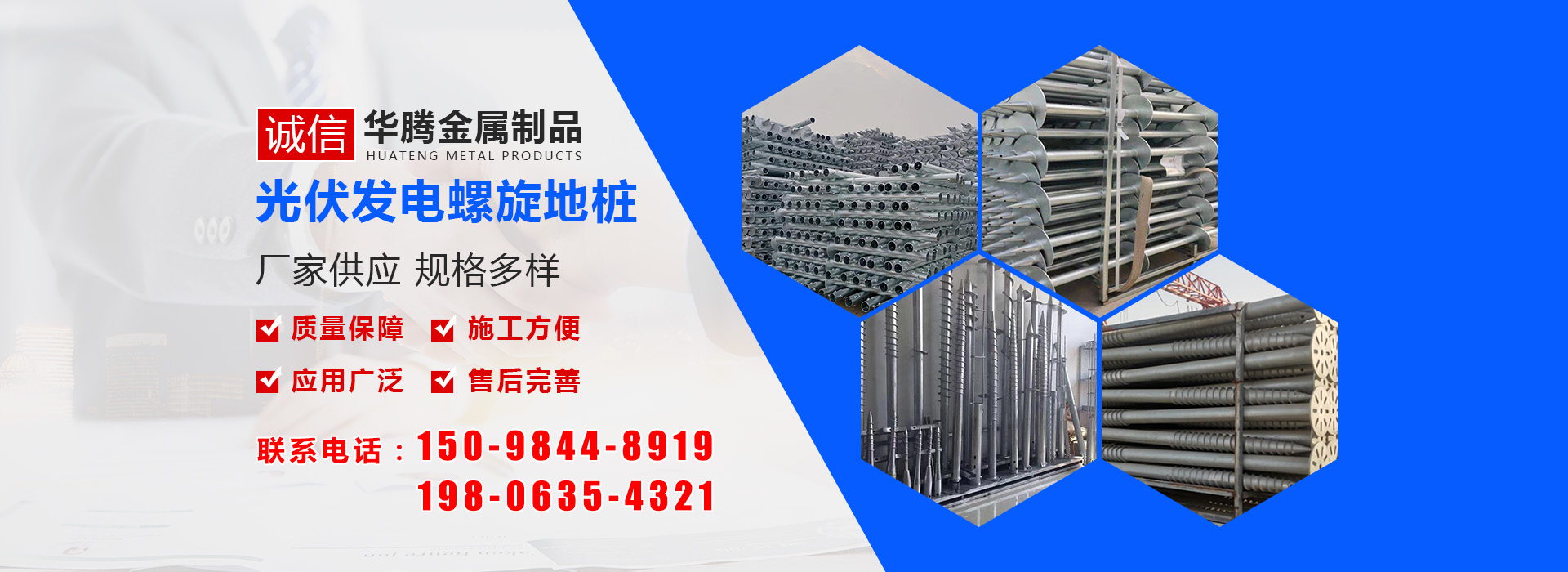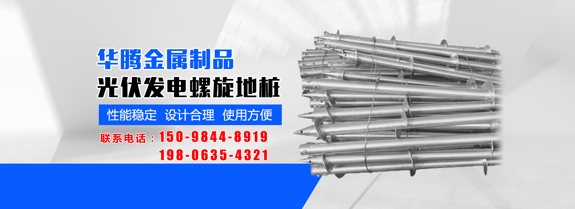 華騰金屬制品 (山東) 有限公司是螺旋地樁定制銷售公司,主營(yíng)光伏螺旋地樁、光伏地樁等產(chǎn)品所生產(chǎn)的光伏螺旋地樁品種規(guī)格齊全,并可根據(jù)客戶的需求、圖紙、樣品研發(fā)產(chǎn)品。多年來我們以優(yōu)良的服務(wù)及高精端產(chǎn)品贏得了國(guó)內(nèi)外廣大客商的贊譽(yù)及肯定,光伏螺旋地樁等產(chǎn)品廣泛應(yīng)用于光伏太陽(yáng)能電站樁基、房屋建筑樁基、...…